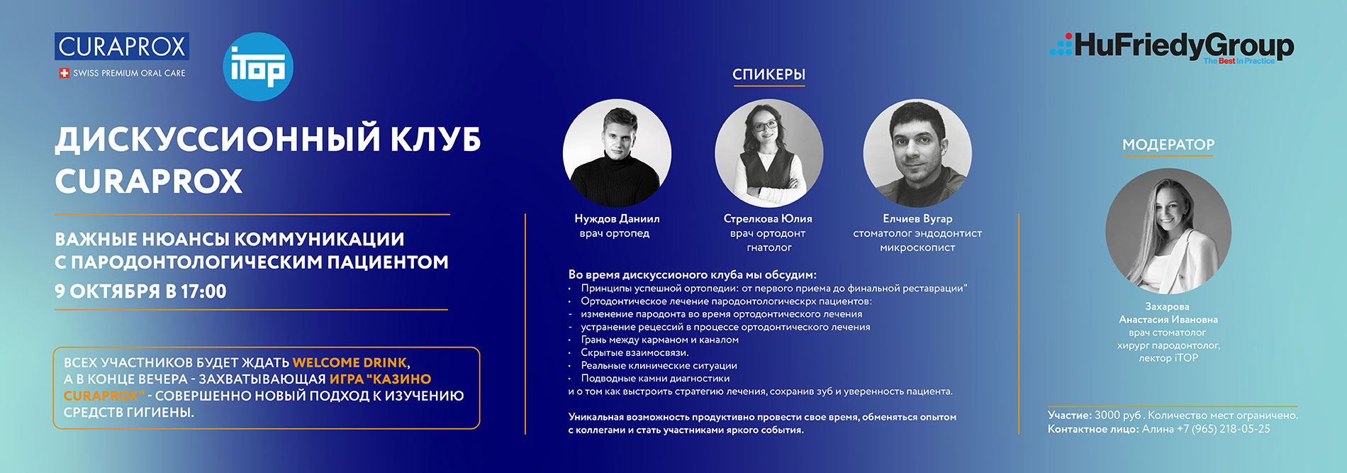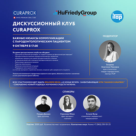 Компания «Курапрокс» совместно с компанией CURADEN AG (Швейцария) представляет обучение по международной программе iTOP для врачей-стоматологов, гигиенистов и пародонтологов.